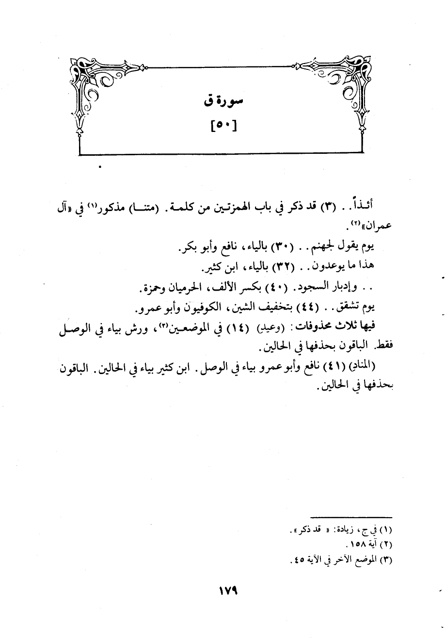 (المنادِ) 41 نافع وأبو عمرو بياء في الوصل. ابن كثير بياء في الحالين. الباقون بحذفها في الحالين.