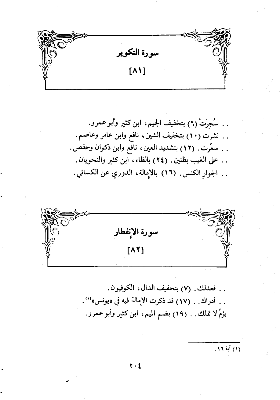 (نشرت) 10 بتخفيف الشين، نافع وابن عامر وعاصمز (سُعّرت) 12 بتشديد العين، نافع وابن ذكوان وحفص.