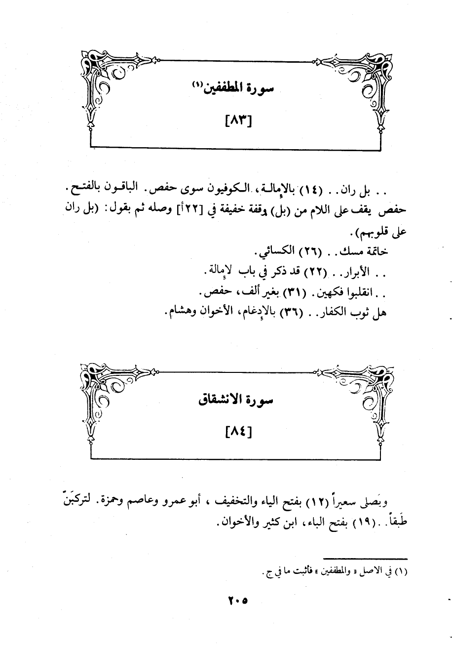 (بل ران) 14 بالإمالة، الكوفيون سوى حفص. الباقون بالفتح. حفص يقف على اللام من " بل " وقفة خفيفة في وصله ثم بقول: (بل ران على قلوبهم) .