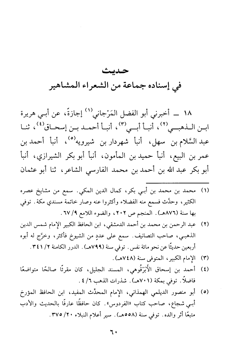 حديث في إسناده جماعة من الشعراء المشاهير