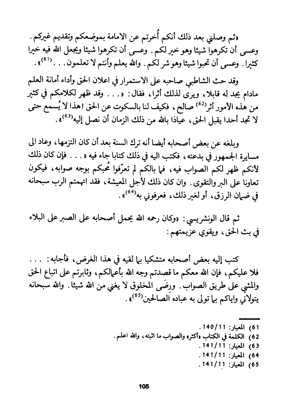 ولا زالت منذ زمان أستشكله، حتى كتبت فيها إلى المغرب وإلى إفريقية، فلم يأتني جواب بما يشفي الصدر. بل كان من جملة الإشكالات الواردة5: أن