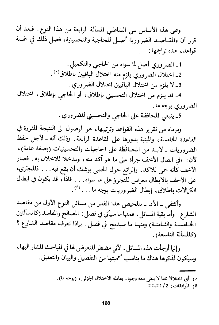 وأما المسألتان الثامنة عشرة والتاسعة عشرة فتتعلقان، بموضوع تعليل الشريعة وأحكامها، وهو الموضوع الذي تعرض له باقتضاب "في المقدمة، كما سبق"، وقد وعدت بالتفصيل فيه، في سياق التعليقات والمناقشات. فإلى هناك بحول الله.
