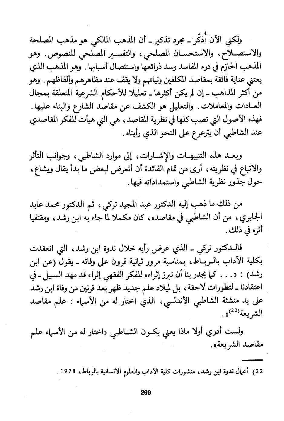 وقد كان من الممكن، أو من الأفصل، التغاضي عن هذا الحكم العام حول تأثير المقري على الشاطبي، رغم ميله إلى المبالغة. ولكن مجيئه في سياق الحديث عن إسهام الشاطبي في بناء المقاصد، جعله منصرفًا إلى هذا الجانب بالذات. ومما يؤكد هذا، هو أن الأستاذ الكريم قد وضع المقري في صف العلماء الذين شيدوا بناء المقاصد. وهذه مبالغة أخرى، أكبر من سابقتها.
