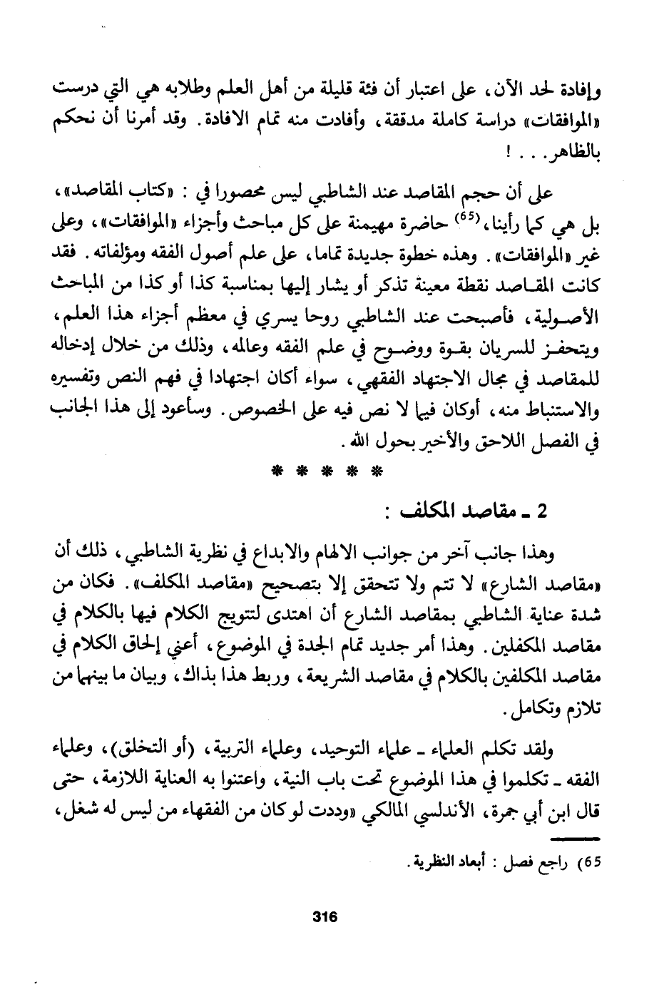 وههنا فإن "الشاطبي النجم"1 فلقد فتح الباب واسعًا لأهل الشريعة وفقهها، للتطلع إلى أسرارها وحكمها، ومهد لهم طريق التعامل مع مقاصدها وكلياتها، جنبًا إلى جنب مع نصوصها وجزئياتها، فأعطي بذلك للفقه الإسلامي، وللفكر الإسلامي مصدر انبعاث وتجدد، كان قد افتقده إلى حد كبير.