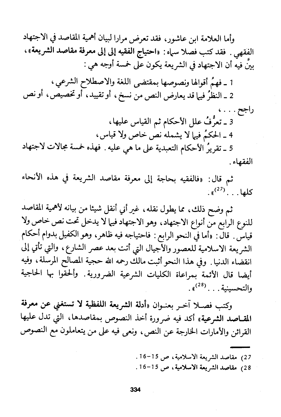 فلا بد للمجتهد، وهو ينظر في هذه الجزئيات، من استحضار كليات الشريعة ومقاصدها العامة، وقواعدها الجامعة. لا بد من مراعاة هذه وتلك في آن واحد، ولا بد أن يكون الحكم مبنيًا على هذه وتلك معًا: أعني الأدلة الكلية، والأدلة الجزئية. فهذا ضرب من ضروب الاجتهاد المقاصدي ومسلك من مسالكه.