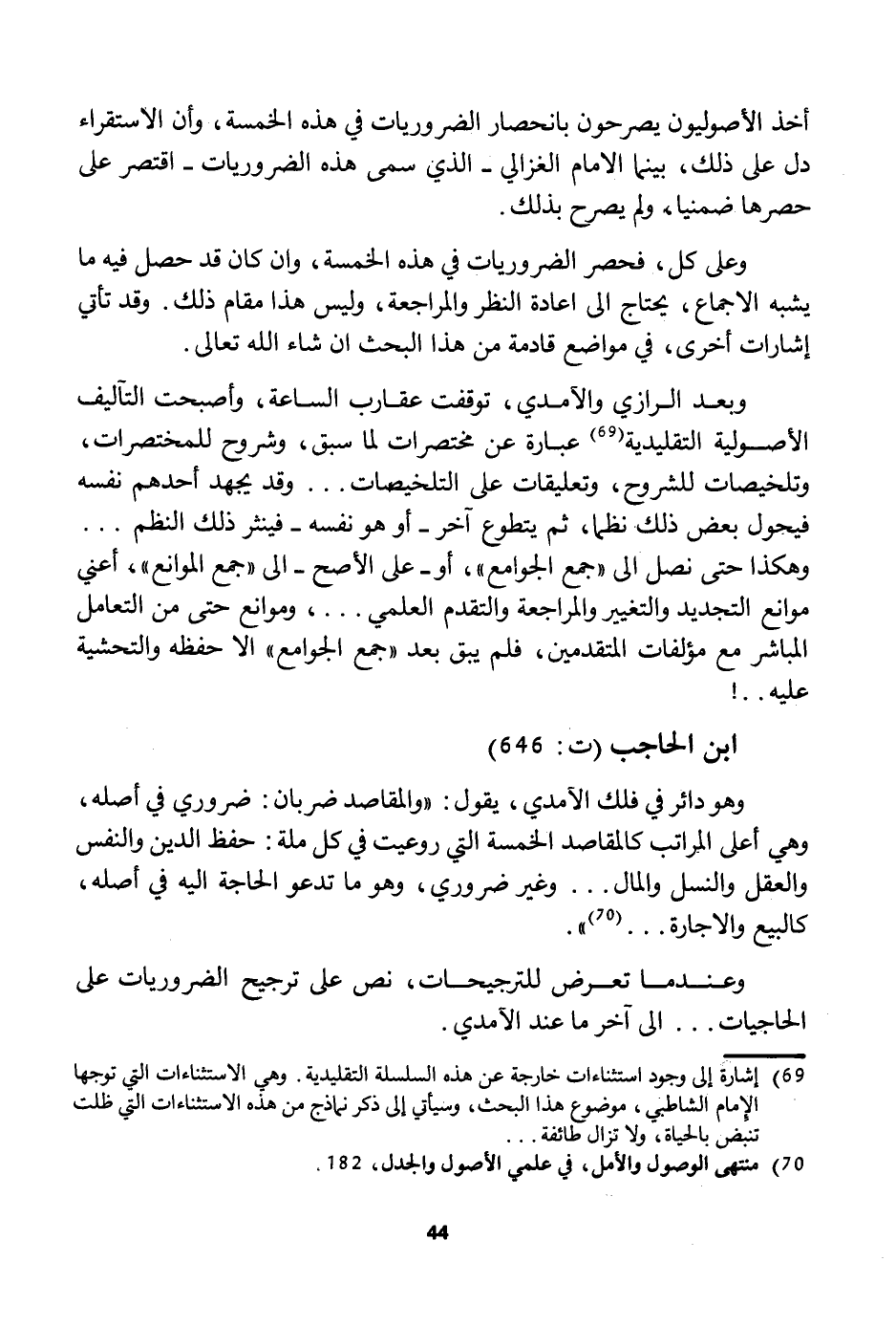 الدنيا ومفاسدها: "فمصالح الآخرة: الحصول على الثواب، والنجاة من العقاب. ومفاسدها: الحصول على العقاب، وفوات الثواب وأما مصالح الدنيا: فما تدعو إليه الضروريات أو الحاجات، أو التتمات والتكملات. وأما مفاسدها. ففوات ذلك بالحصول على أضداده"1.