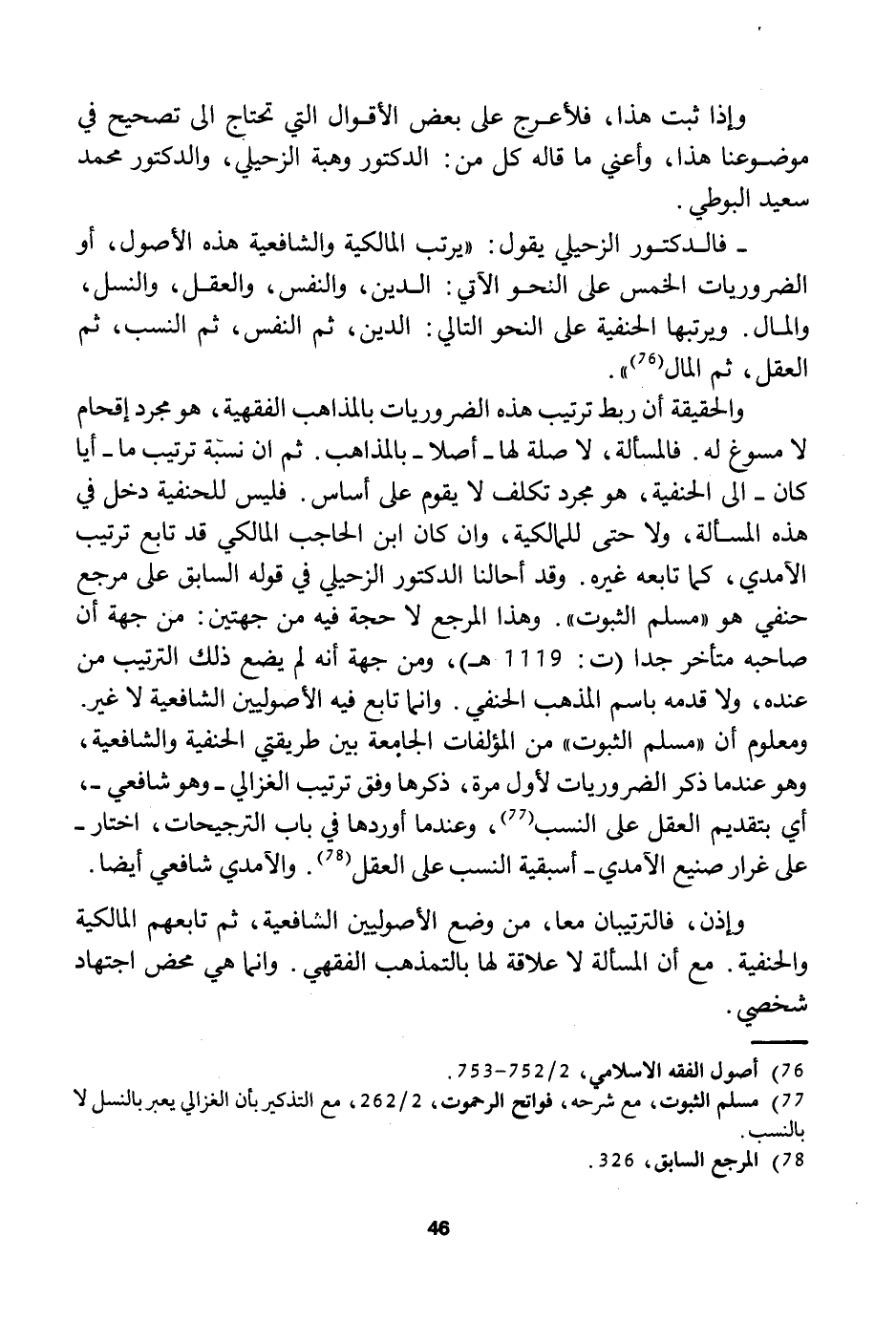 ولابن تيمية رحمه الله، استدراك على الأصوليين في حصرهم لمقاصد الشرعية في المقاصد الخمسة المعروفة، حيث يرى أنها لا تشتمل مقاصد سامية عظيمة في الشريعة، وفي هذا يقول: "وقوم من الخائضين في أصول الفقه، وتعليل الأحكام الشرعية بالأوصاف المناسبة، إذا تكلموا في المناسبة، وأن ترتيب الشارع للأحكام الشرعية بالأوصاف المناسبة يتضمن تحصيل مصالح العباد، ودفع