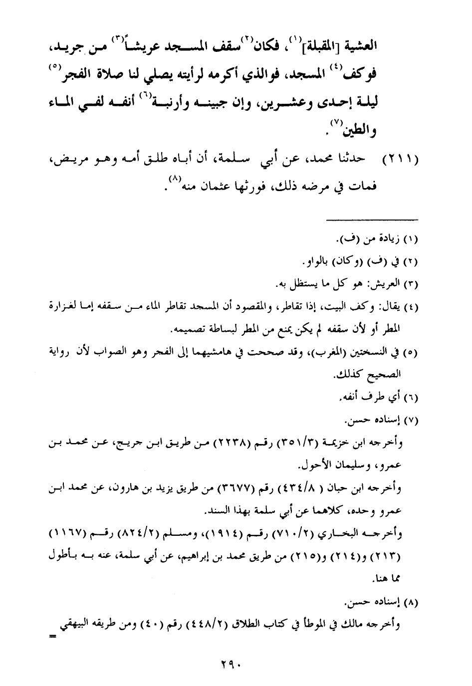 ٢١١ - حَدَّثَنَا مُحَمَّدٌ، عَنْ أَبِي سَلَمَةَ: «أَنَّ أَبَاهُ طَلَّقَ أُمَّهُ وَهُوَ مَرِيضٌ، فَمَاتَ فِي مَرَضِهِ ذَلِكَ، فَوَرِثَهَا عُثْمَانُ مِنْهُ»