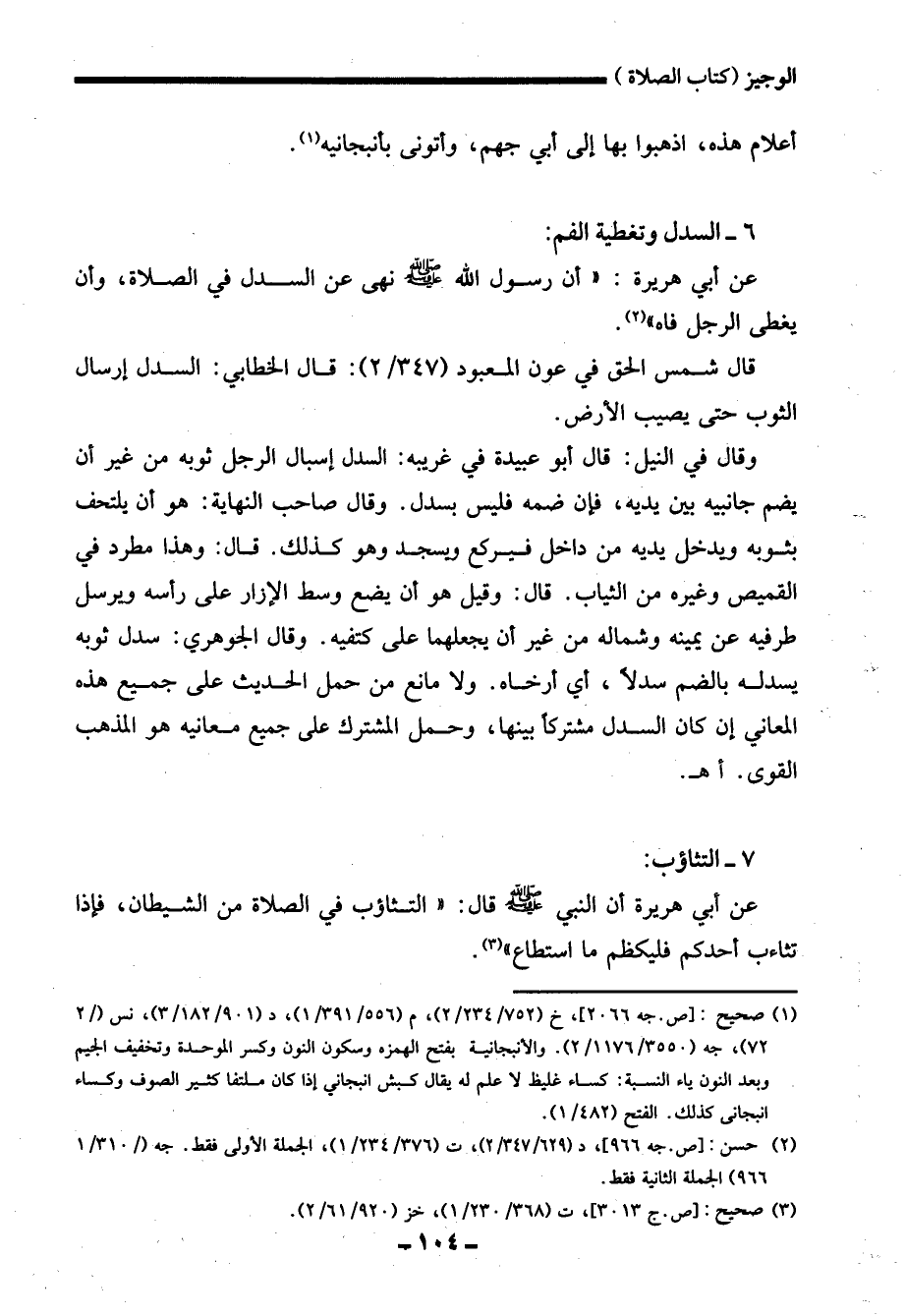 عن أبي هريرة: "أن رسول الله - صلى الله عليه وسلم - نهى عن السدل في الصلاة، وأن يغطى الرجل فاه" (¬2).