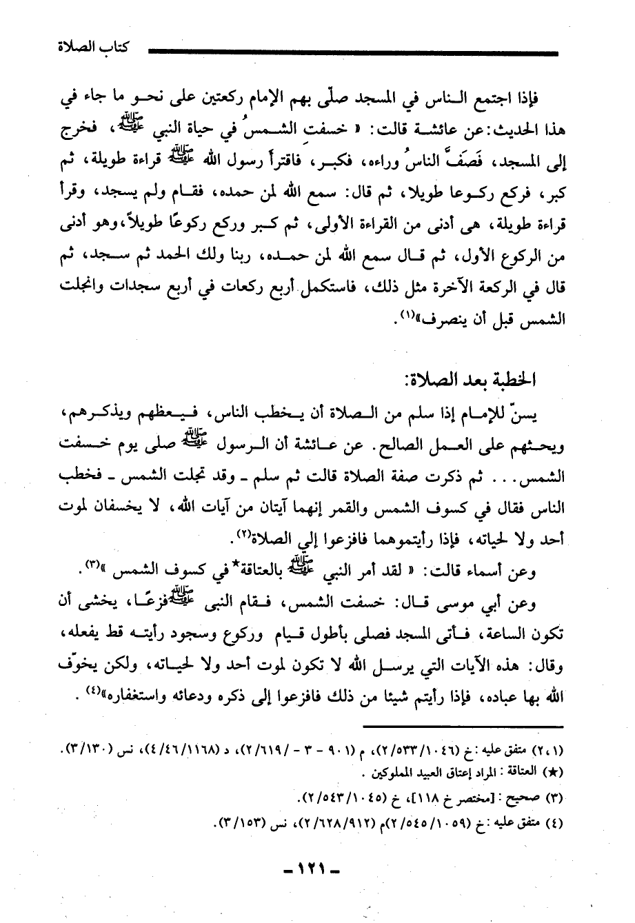 (¬1) و (¬2) متفق عليه: خ (1046/ 533/ 2)، م (901 - 3 - 619/ 2/)، د (1168/ 46/ 4)، نس (130/ 3).