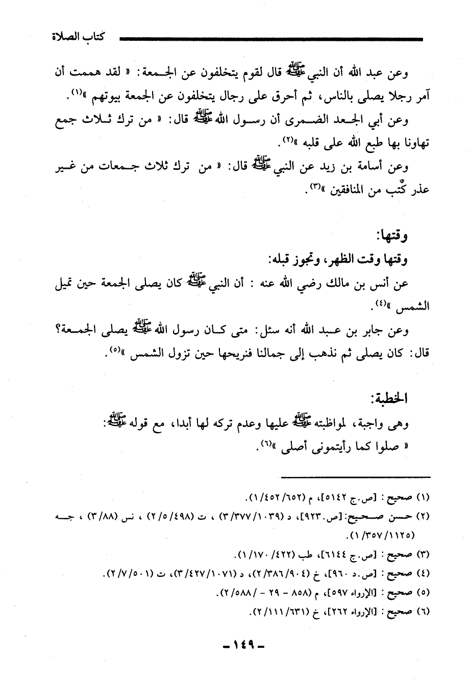 وعن جابر بن عبد الله أنه سئل: متى كان رسول الله - صلى الله عليه وسلم - يصلى الجمعة؟ قال: كان يصلى ثم نذهب إلى جمالنا فنريحها حين تزول الشمس" (¬5).