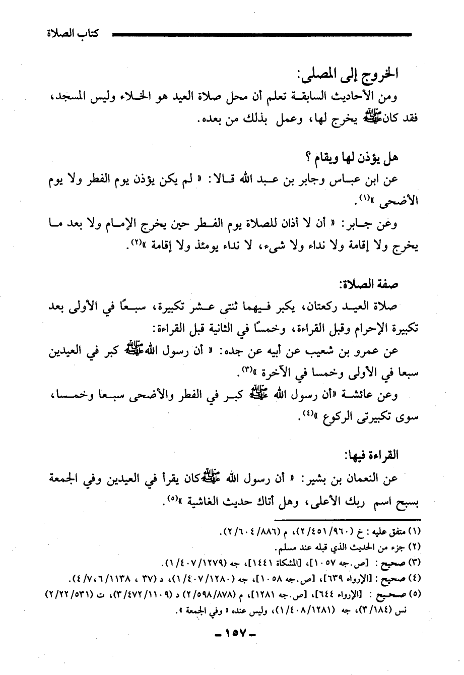 وعن جابر: "أن لا أذان للصلاة يوم الفطر حين يخرج الإِمام ولا بعد ما يخرج ولا إقامة ولا نداء ولا شىء، لا نداء يومئذ ولا إقامة" (¬2).