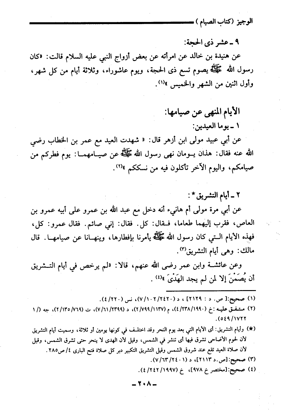 (*) وأيام التشريق: أي الأيام التي بعد يوم النحر وقد اختلف في كونها يومين أو ثلاثة، وسميت أيام التشريق لأنّ لحوم الأضاحى تشرق فيها أي تنشر في الشمس، وقيل لأن الهدى لا ينحر حتى تشرق الشمس، وقيل لأنّ صلاة العيد تقع عند شروق الشمس وقيل التشريق التكبير دبر كل صلاة فتح البارى 4/ ص 285.