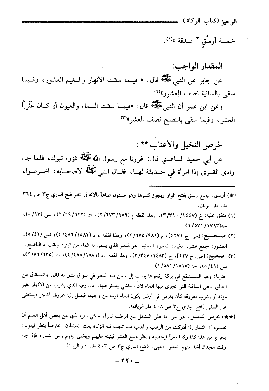 (*) أوسق: جمع وسق بفتح الواو ويجوز كسرها وهو ستون صاعًا بالاتفاق انظر فتح الباري ج 3 ص 364 ط. دار الريان.