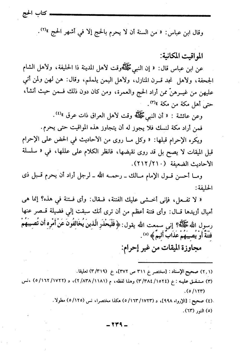 عن ابن عباس قال: "إن النبي - صلى الله عليه وسلم - وقت لأهل المدينة ذا الحليفة، ولأهل الشام الجحفة، ولأهل نجد قرن المنازل، ولأهل اليمن يلملم، وقال: هن لهن ولمن أتي عليهن من غيرهنّ ممن أراد الحج والعمرة، ومن كان دون ذلك فمن حيث أنشأ، حتى أهل مكة من مكة" (¬3).
