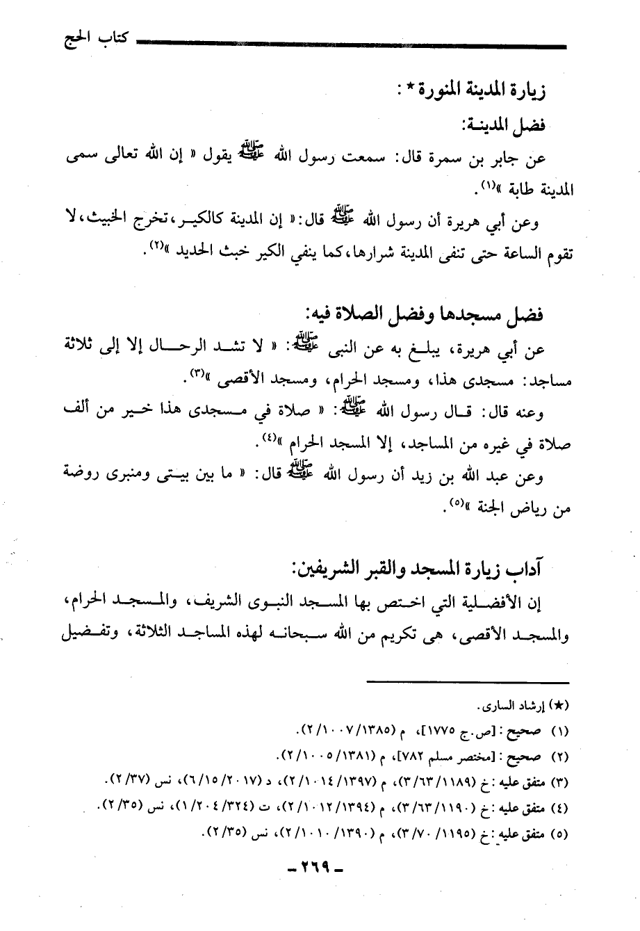 عن أبي هريرة، يبلغ به عن النبي - صلى الله عليه وسلم -: "لا تشد الرحال إلا إلى ثلاثة مساجد: مسجدى هذا، ومسجد الحرام، ومسجد الأقصى" (¬3).