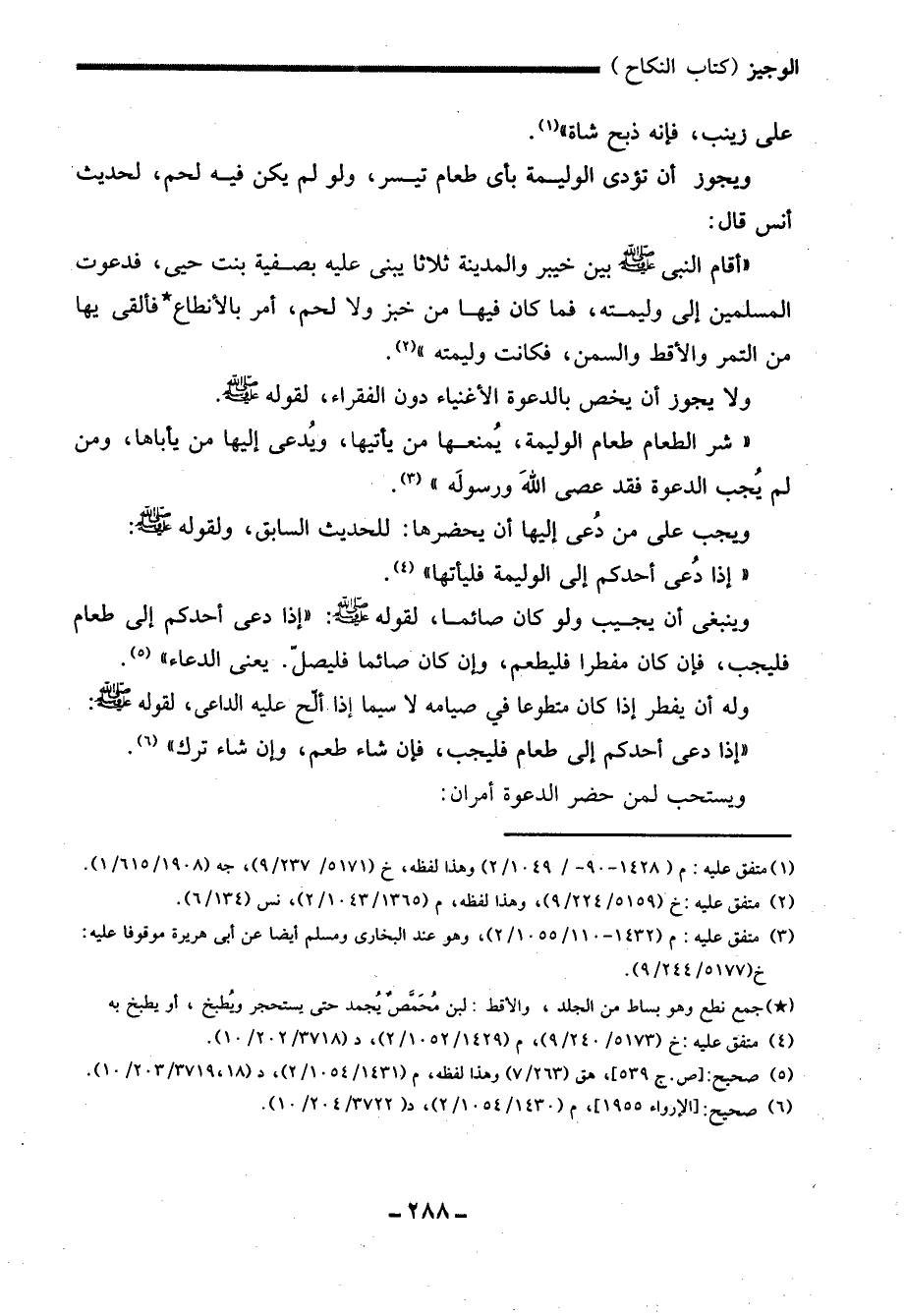 ولا يجوز أن يخص بالدعوة الأغنياء دون الفقراء، لقوله - صلى الله عليه وسلم -. "شر الطعام طعام الوليمة، يُمنعها من يأتيها، ويُدعى إليها من يأباها، ومن لم يُجب الدعوة فقد عصى الله ورسولَه" (¬3).