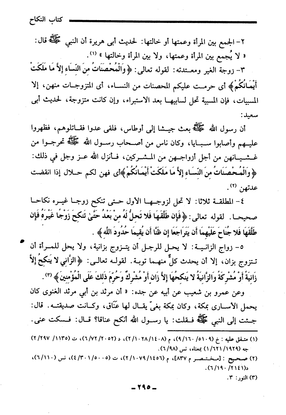 2 - الجمع بين المرأة وعمتها أو خالتها: لحديث أبى هريرة أن النبي - صلى الله عليه وسلم -قال: