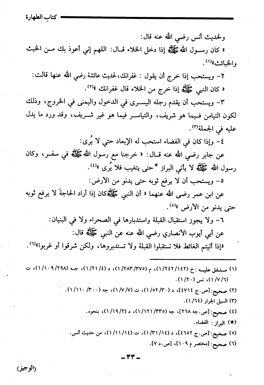 (¬1) منفق عليه: خ (142/ 242/ 1)، م (375/ 283/ 1)، د (4/ 21/ 1)، جه (298/ 109/ 1) , ت (6/ 7/ 1)، نس (20/ 1).