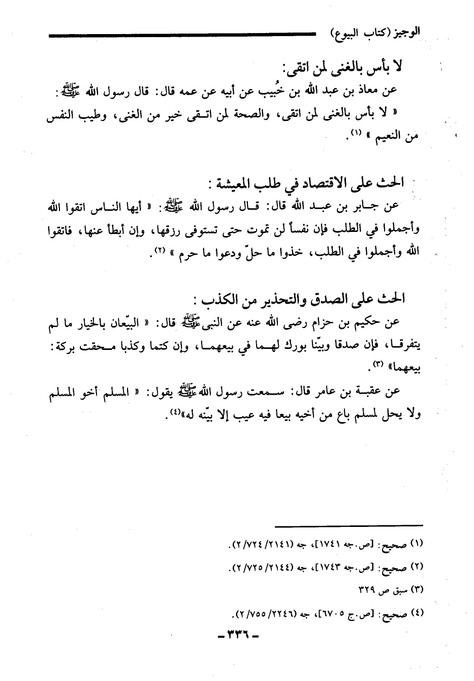 عن حكيم بن حزام رضي الله عنه عن النبي - صلى الله عليه وسلم - قال: "البيّعان بالخيار ما لم يتفرقا، فان صدقا وبيّنا بورك لهما في بيعهما، وإن كتما وكذبا محقت بركة: بيعهما" (¬3).