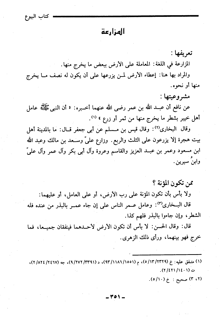 والمراد بها هنا: إعطاء الأرض لمن يزرعها على أن يكون له نصف ما يخرج منها أو نحوه.
