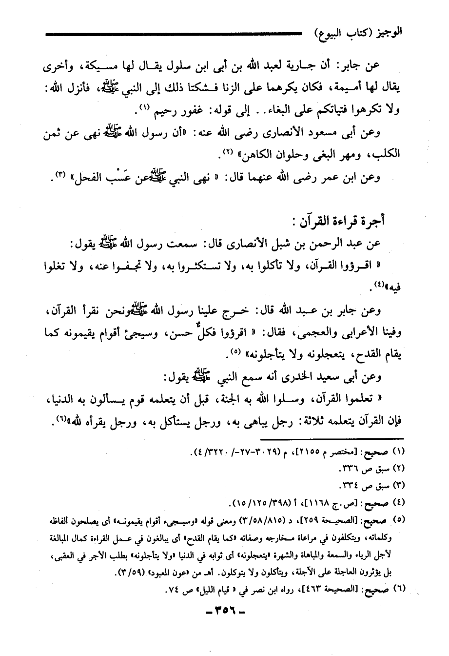 عن عبد الرحمن بن شبل الأنصارى قال: سمعت رسول الله - صلى الله عليه وسلم - يقول: "اقرؤوا القرآن، ولا تأكلوا به، ولا تستكثروا به، ولا تجفوا عنه، ولا تغلوا فيه" (¬4).