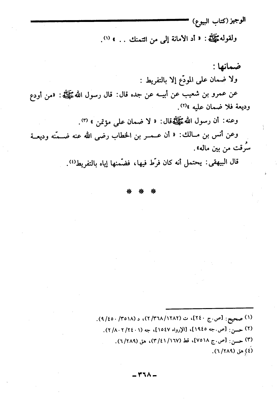 قال البيهقي: يحتمل أنه كان فرّط فيها، فضمنها إياه بالتفريط (¬4).