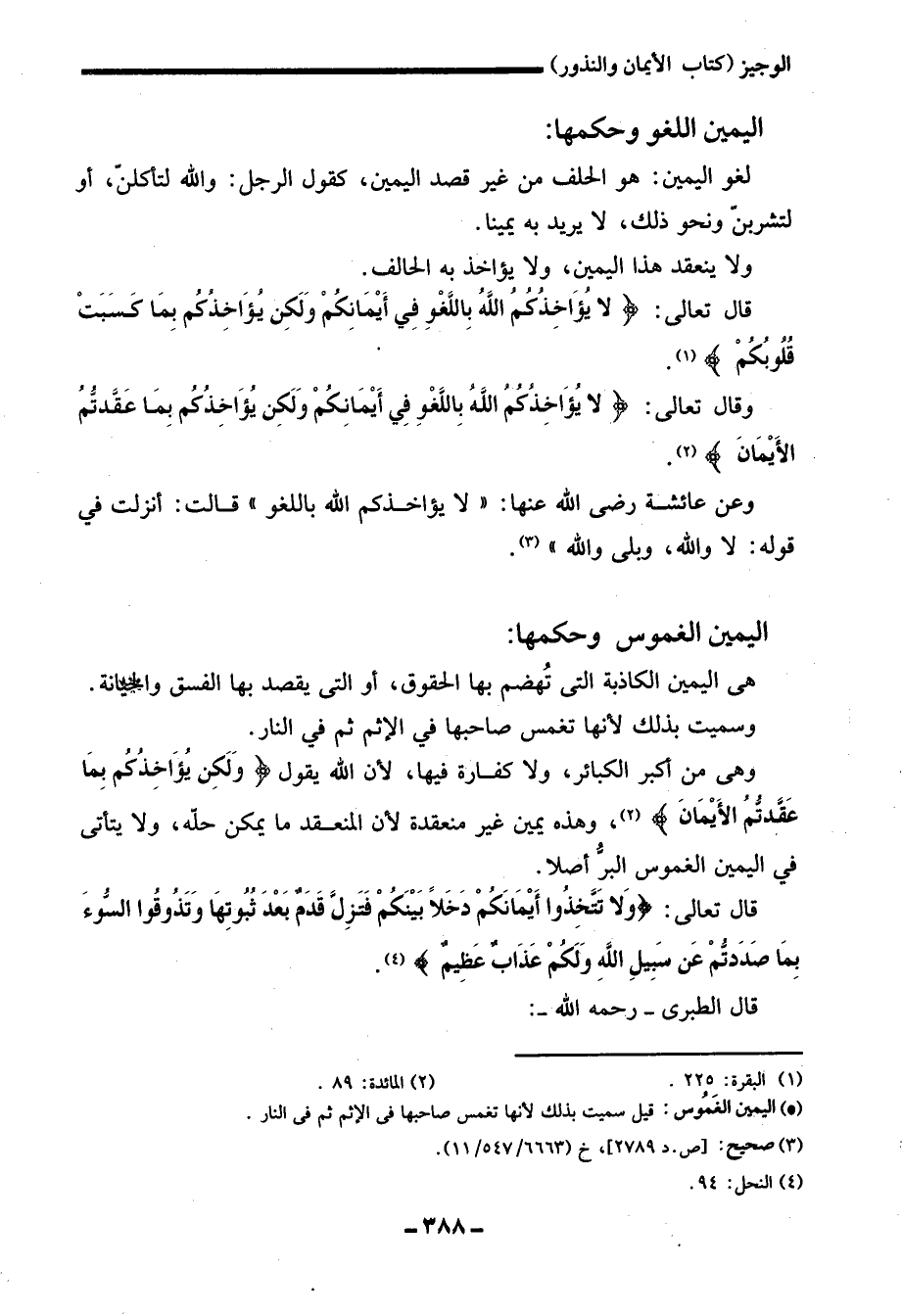 (*) اليمين الغَمُوس: قيل سميت بذلك لأنها تغمس صاحبها في الإثم ثم في النار.