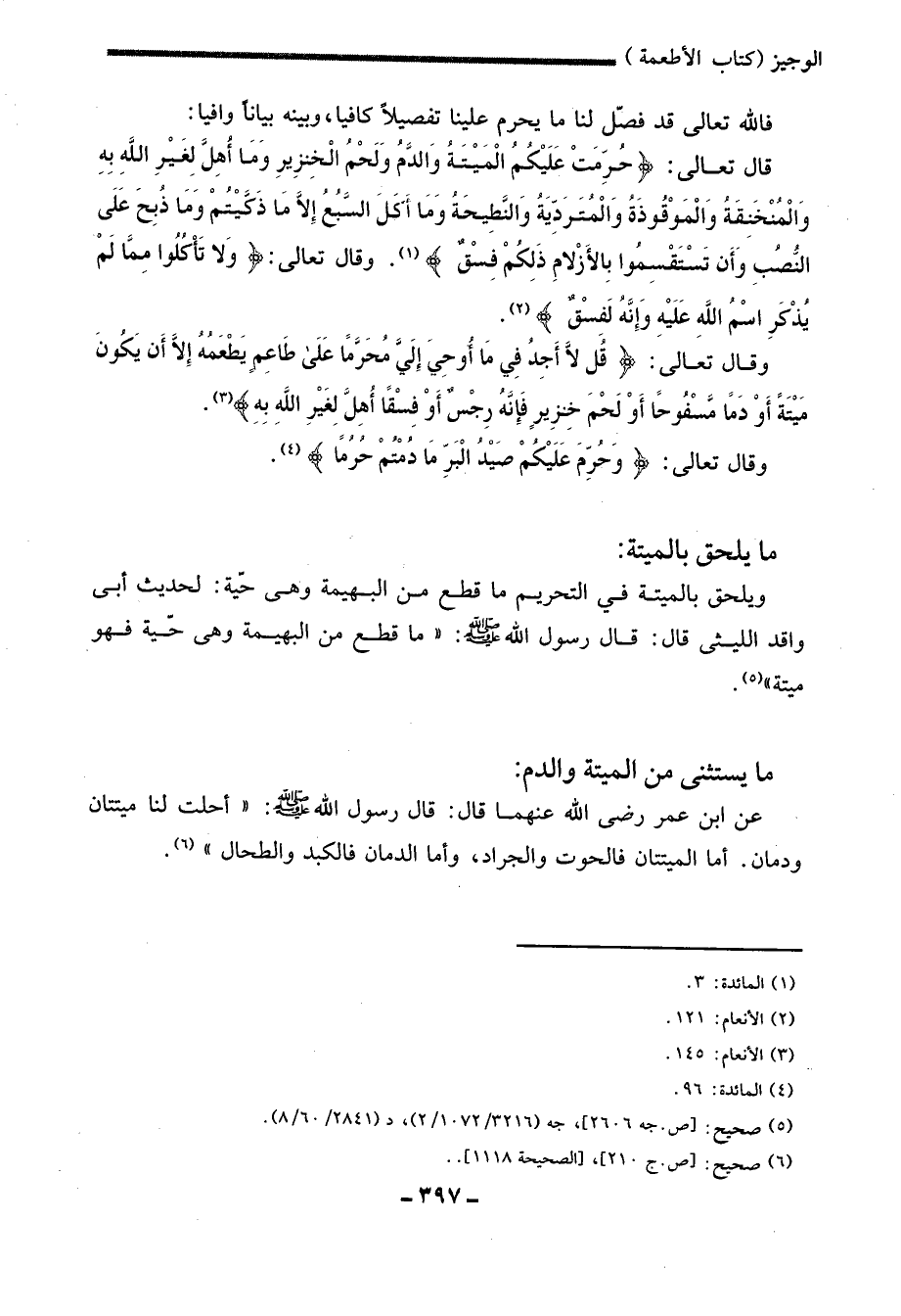 ويلحق بالميتة في التحريم ما قطع من البهيمة وهي حّية: لحديث أبى واقد الليثى قال: قال رسول الله - صلى الله عليه وسلم - "ما قطع من البهيمه وهى حيه ميتة" (¬5).