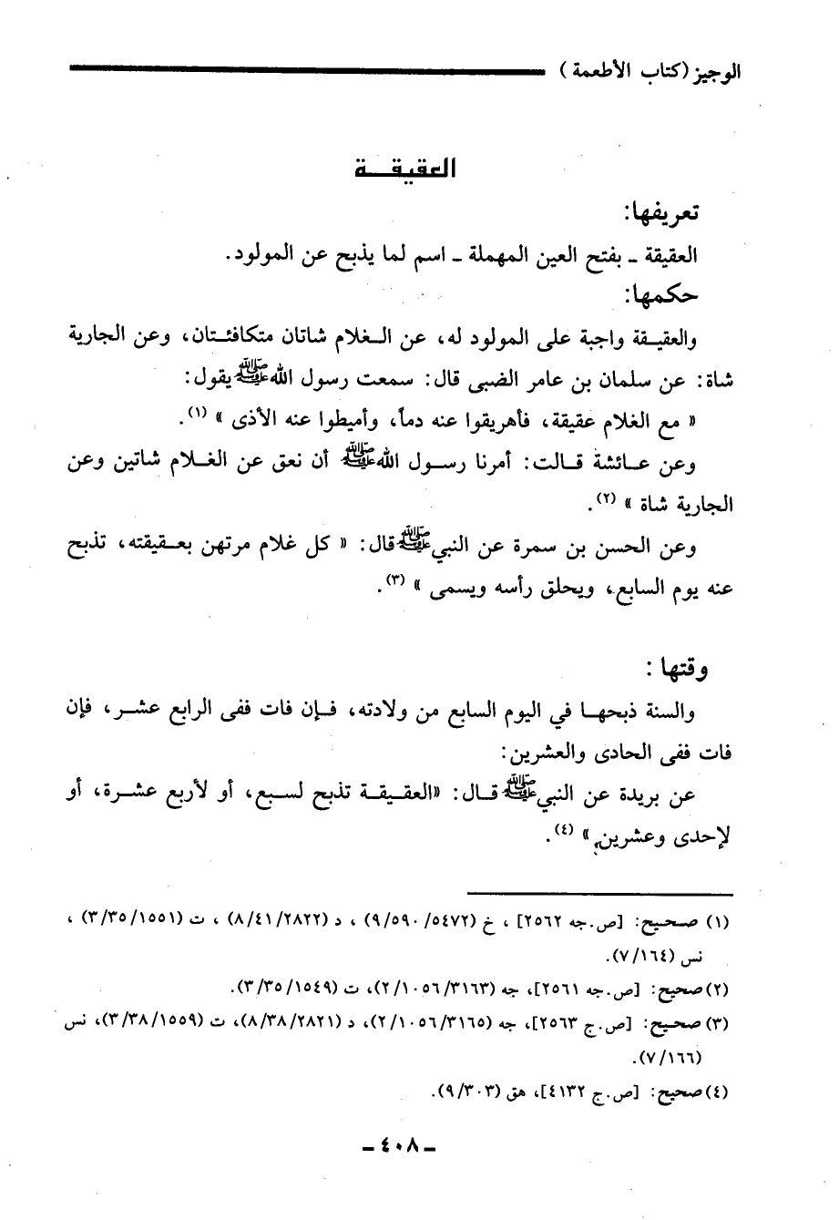 والسنة ذبحها في اليوم السابع من ولادته، فإن فات ففى الرابع عشر، فإن فات ففى الحادى والعشرين:
