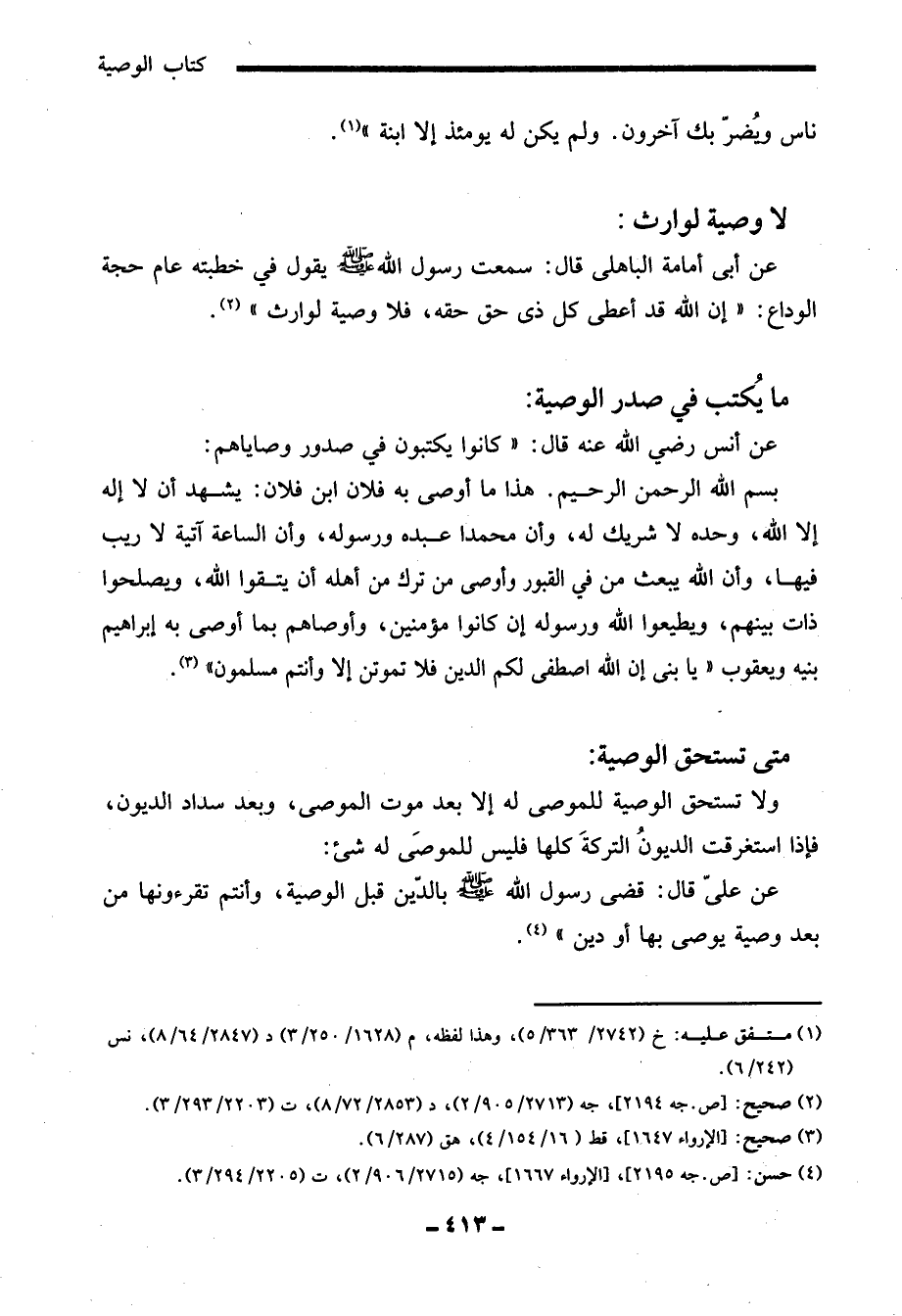 بسم الله الرحمن الرحيم. هذا ما أوصى به فلان ابن فلان: يشهد أن لا إله إلا الله، وحده لا شريك له، وأن محمدا عبده ورسوله، وأن الساعة آتية لا ريب فيها، وأن الله يبعث من في القبور وأوصى من ترك من أهله أن يتقوا الله، ويصلحوا ذات بينهم، ويطيعوا الله ورسوله إن كانوا مؤمنين، وأوصاهم بما أوصى به إبراهيم بنيه ويعقوب "يا بنى إن الله اصطفى لكم الدين فلا تموتن إلا وأنتم مسلمون" (¬3).
