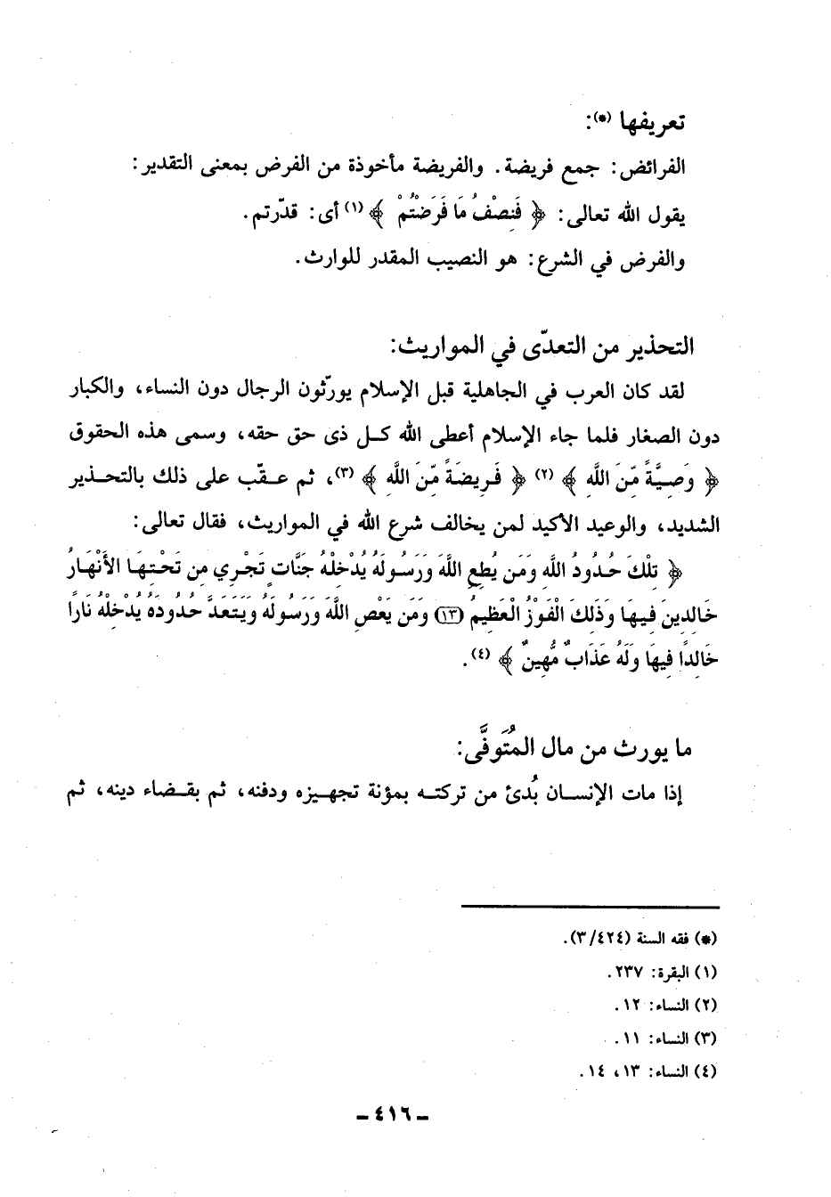 {{تِلْكَ حُدُودُ اللَّهِ وَمَنْ يُطِعِ اللَّهَ وَرَسُولَهُ يُدْخِلْهُ جَنَّاتٍ تَجْرِي مِنْ تَحْتِهَا الْأَنْهَارُ خَالِدِينَ فِيهَا وَذَلِكَ الْفَوْزُ الْعَظِيمُ (13) وَمَنْ يَعْصِ اللَّهَ وَرَسُولَهُ وَيَتَعَدَّ حُدُودَهُ يُدْخِلْهُ نَارًا خَالِدًا فِيهَا وَلَهُ عَذَابٌ مُهِينٌ} (¬4).