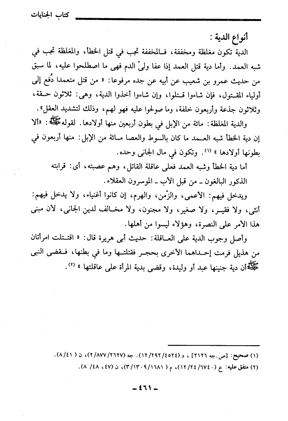 الدية تكون مغلظة ومخففة، فالمخففة تجب في قتل الخطأ، والمغلظة تجب في شبه العمد. وأما دية قتل العمد إذا عما ولىّ الدم فهي ما اصطلحوا عليه، لما سبق من حديث عمرو بن شعيب عن أبيه عن جده مرفوعا: "من قتل متعمدا دُفع إلى أولياء المقتول، فإن شاءوا قتلوا، وإن شاءوا أخذوا الدية، وهي: ثلاثون حقة، وثلاثون جذعة وأربعون خلفة، وما صولحوا عليه فهو لهم، وذلك لتشديد العقل".