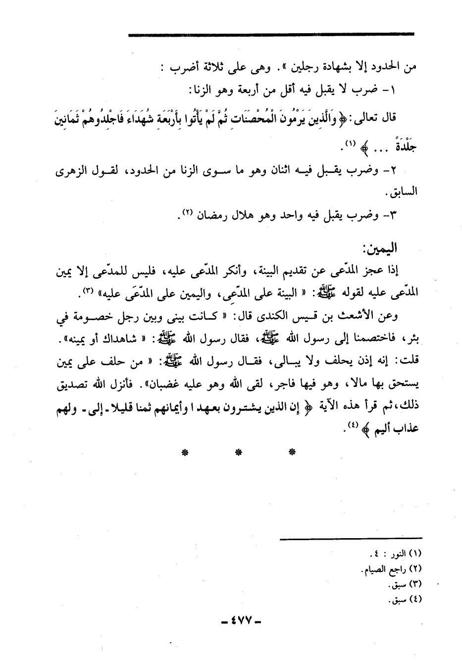 من الحدود إلا بشهادة رجلين". وهي على ثلاثة أضرب:
