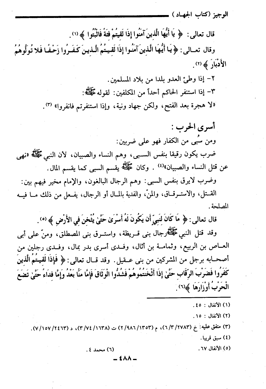 قال تعالى: {مَا كَانَ لِنَبِيٍّ أَنْ يَكُونَ لَهُ أَسْرَى حَتَّى يُثْخِنَ فِي الْأَرْضِ} (¬5).