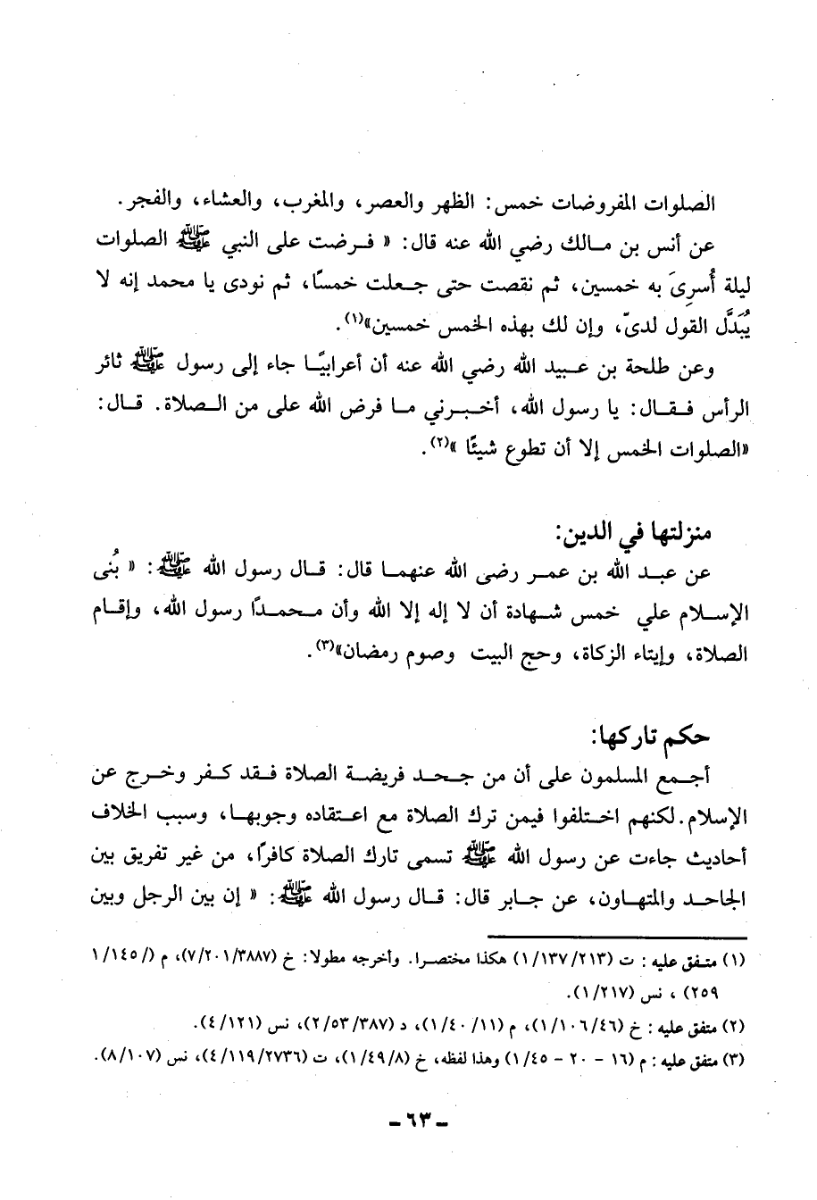 (¬3) متفق عليه: م (16 - 20 - 45/ 1) وهذا لفظه، خ (8/ 49/ 1)، ت (2736/ 119/ 4)، نس (107/ 8).