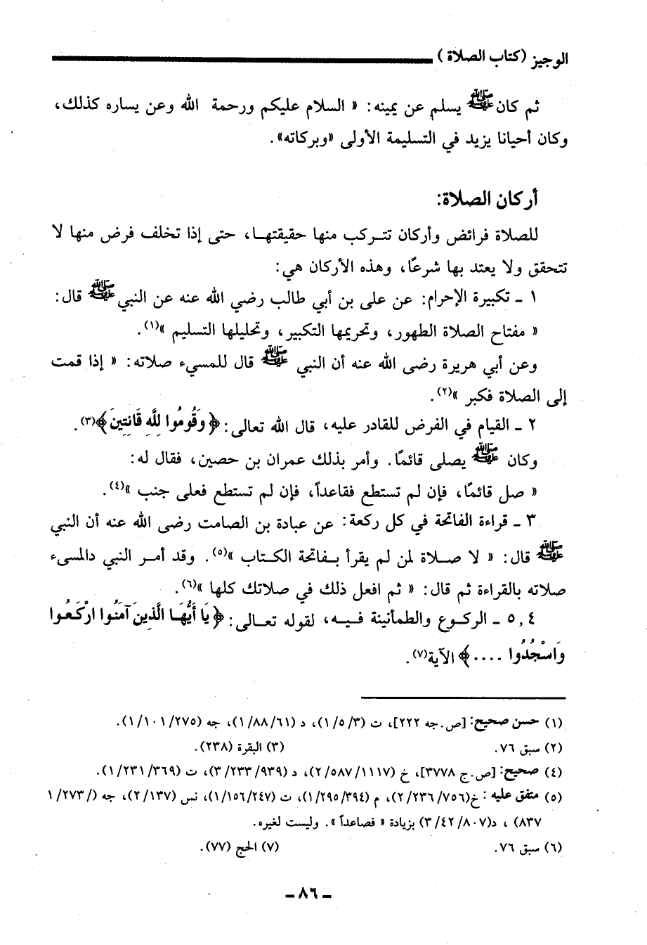 1 - تكبيرة الإحرام: عن علي بن أبي طالب - رضي الله عنه - عن النبي - صلى الله عليه وسلم - قال: "مفتاح الصلاة الطهور، وتحريمها التكبير، وتحليلها التسليم" (¬1).