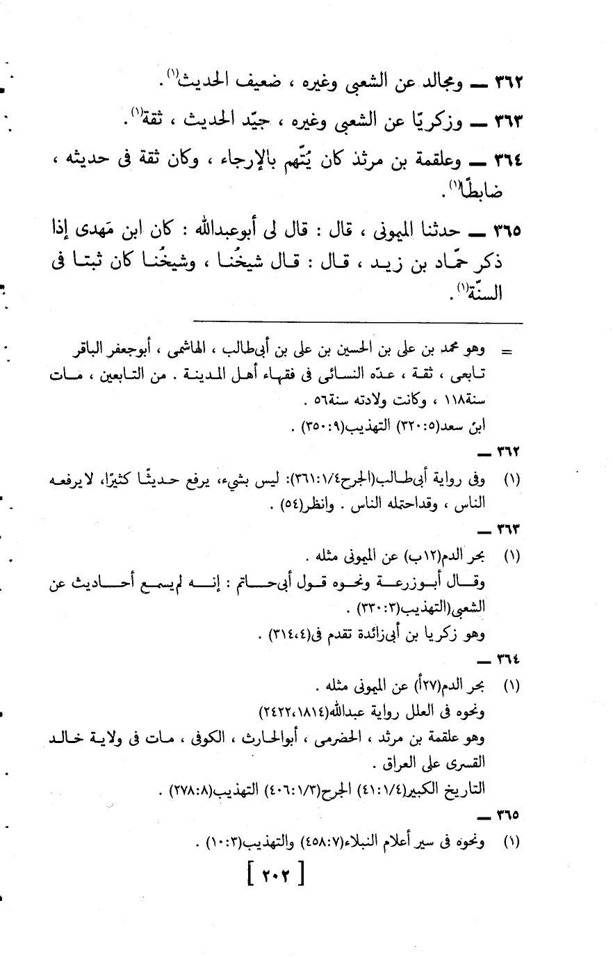 364 - وعلقمة بن مرْثَد كَانَ يتهم بالإرجاء، وَكَانَ ثِقَة فِي حَدِيثه، ضابطا.