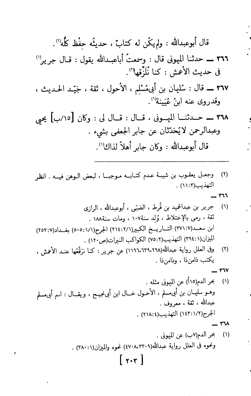 368 - حَدثنَا الْمَيْمُونِيّ، قَالَ: قَالَ لي: وَكَانَ يحيى , وَعبد الرَّحْمَن لَا يحدثان عَن جَابر الْجعْفِيّ بِشَيْء.