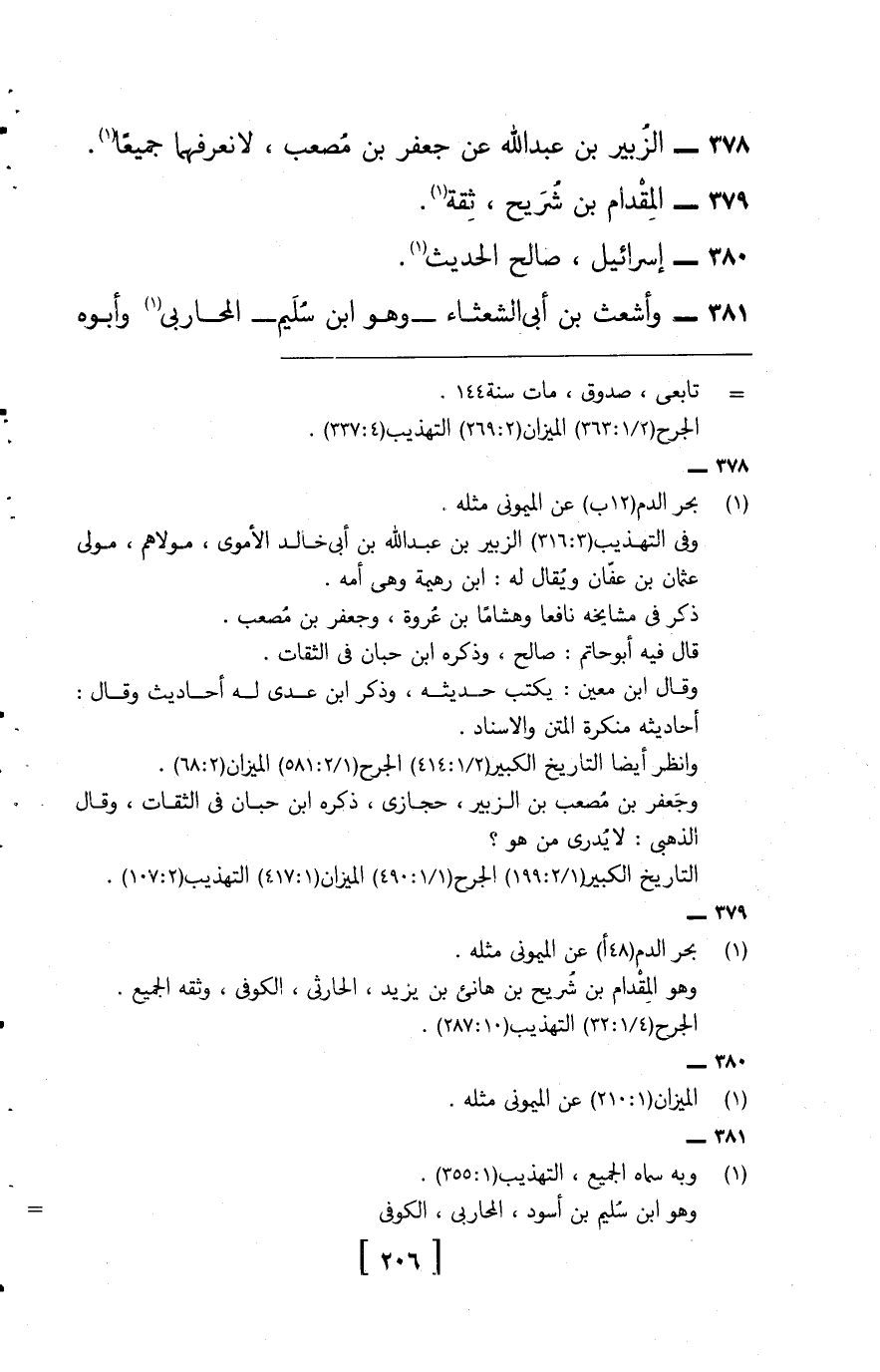 378 - الزبير بن عبد الله , عَن جَعْفَر بن مُصعب، لَا نعرفهما جَمِيعًا.