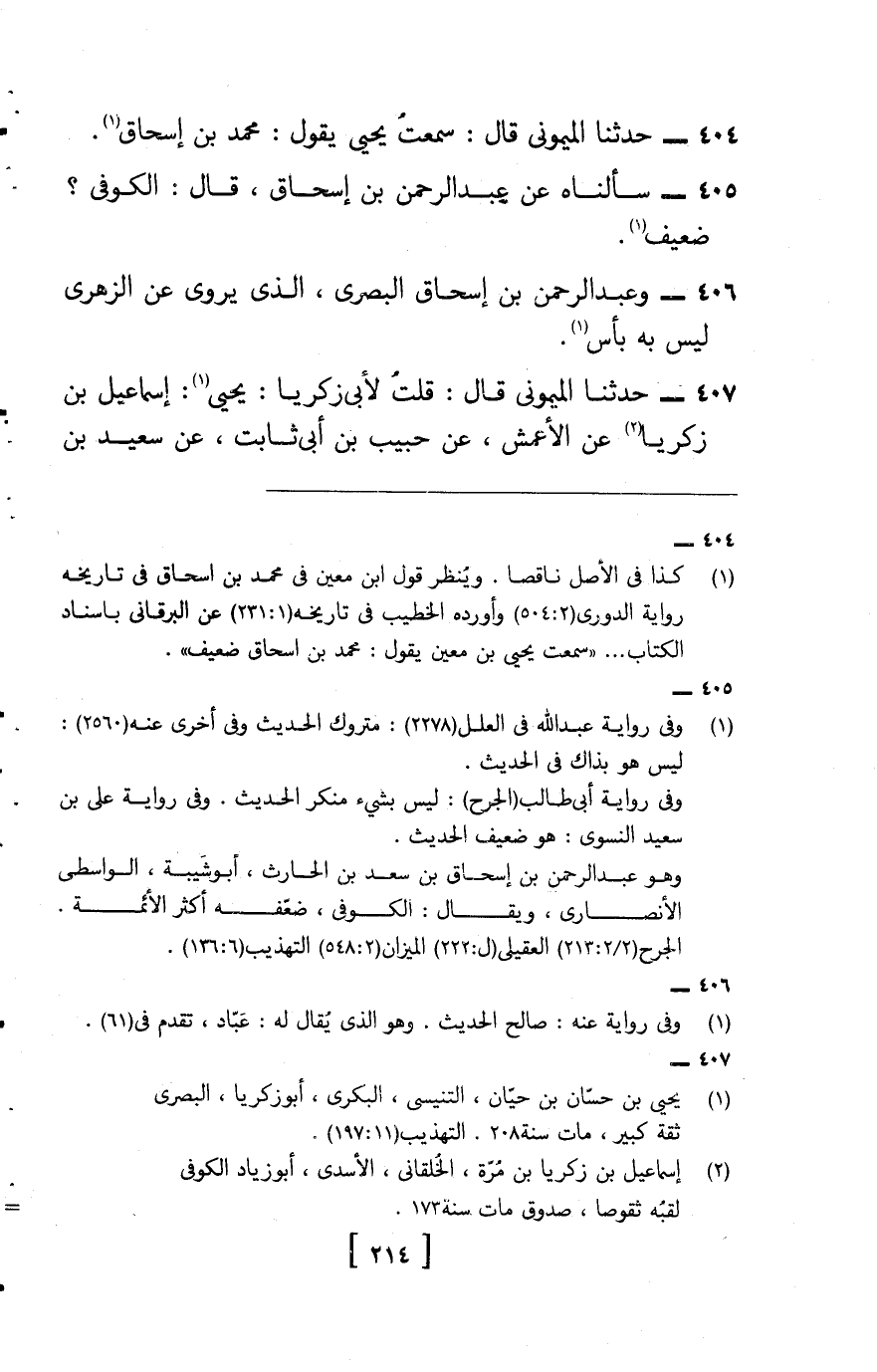 404 - حَدثنَا الْمَيْمُونِيّ , قَالَ: سَمِعت يحيى , يَقُول: مُحَمَّد بن إِسْحَاق.