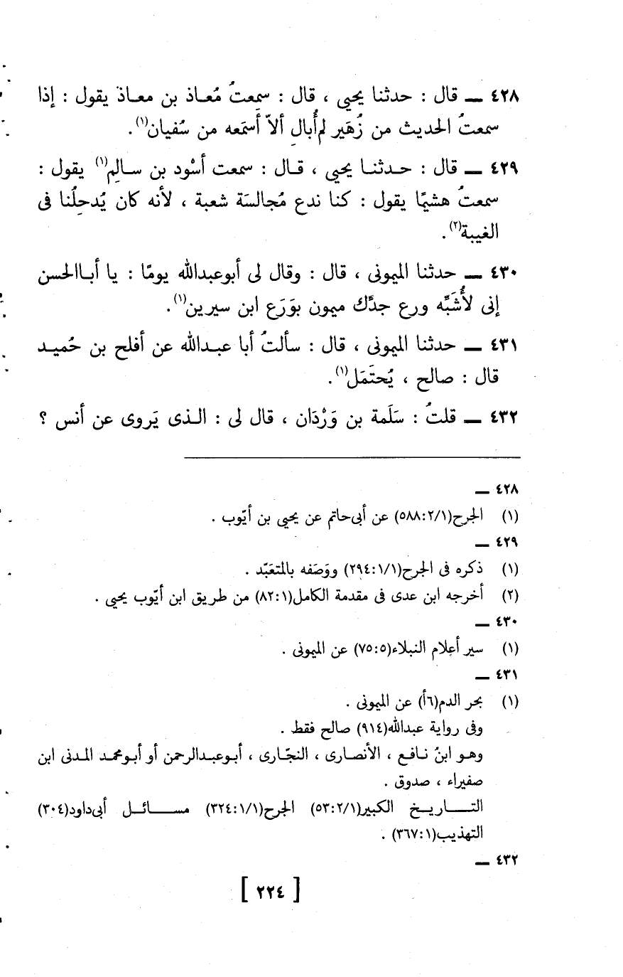 429 - قَالَ حَدثنَا يحيى، قَالَ: سَمِعت أسود بن سَالم , يَقُول: سَمِعت هشيما , يَقُول: كُنَّا نَدع مجالسة شُعْبَة، لِأَنَّهُ كَانَ يدخلنا فِي الْغَيْبَة.