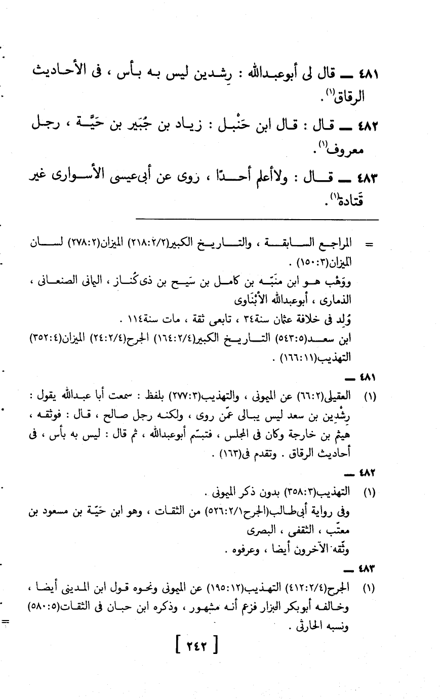 482 - قَالَ: قَالَ ابْن حَنْبَل: زِيَاد جُبَير بن حَيَّة، رجل مَعْرُوف.