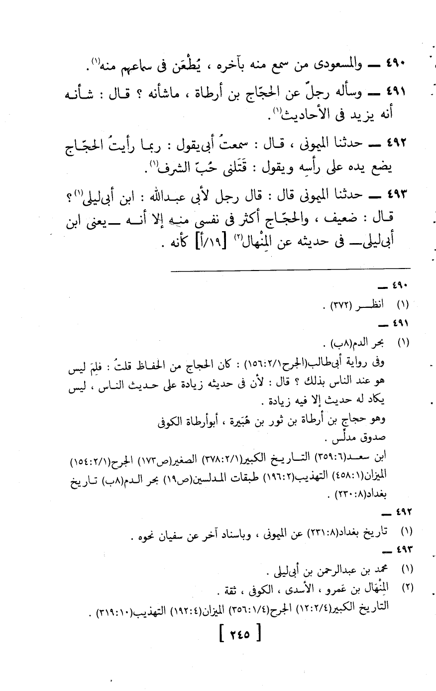 491 - وَسَأَلَهُ رجل عَن الْحجَّاج بن أَرْطَأَة، مَا شَأْنه؟ قَالَ: شَأْنه أَنه يزِيد فِي الْأَحَادِيث.