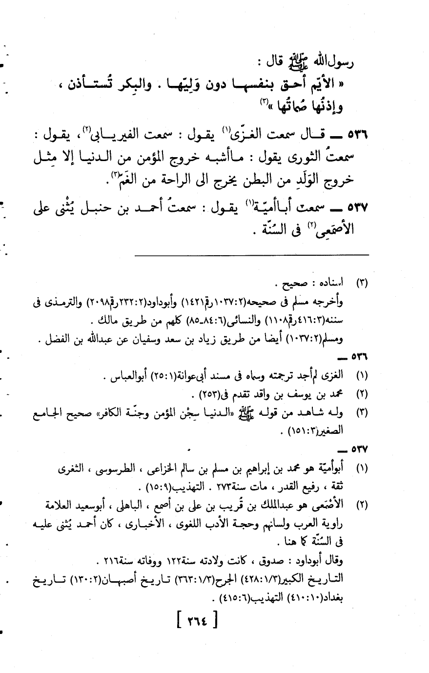 537 - سَمِعت أَبَا أُميَّة , يَقُول: سَمِعت أَحْمد بن حَنْبَل , يثني على الْأَصْمَعِي فِي السّنة ,