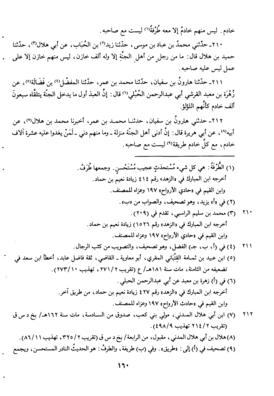 210 - حَدَّثَنِي مُحَمَّدُ بْنُ عَبَّادِ بْنِ موسى حدثنا زيد بْنُ الْحُبَابِ عَنْ أَبِي هِلَالٍ حدثنا حميد بن هلال قال ما من رجل من أهل الجنة إلا وله ألف خازن ليس منهم خازن إلا على عمل ليس عليه صَاحِبِهِ.