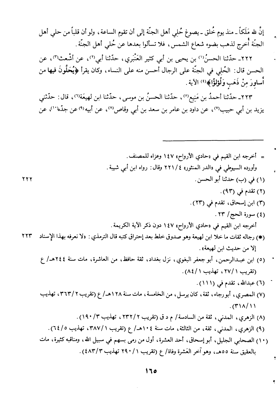 222 - حَدَّثَنَا الْحَسَنُ بْنُ يَحْيَى بْنِ أبي كثير العنبري حدثنا أَبِي عَنْ أَشْعَثَ عَنِ الْحَسَنِ قَالَ الْحُلِيُّ فِي الْجَنَّةِ عَلَى الرِّجَالِ أَحْسَنُ مِنْهُ عَلَى النِّسَاءِ وَكَانَ يَقْرَأُ {يُحَلَّوْنَ فِيهَا مِنْ أساور من ذهب ولؤلؤ} الْآيَةَ.