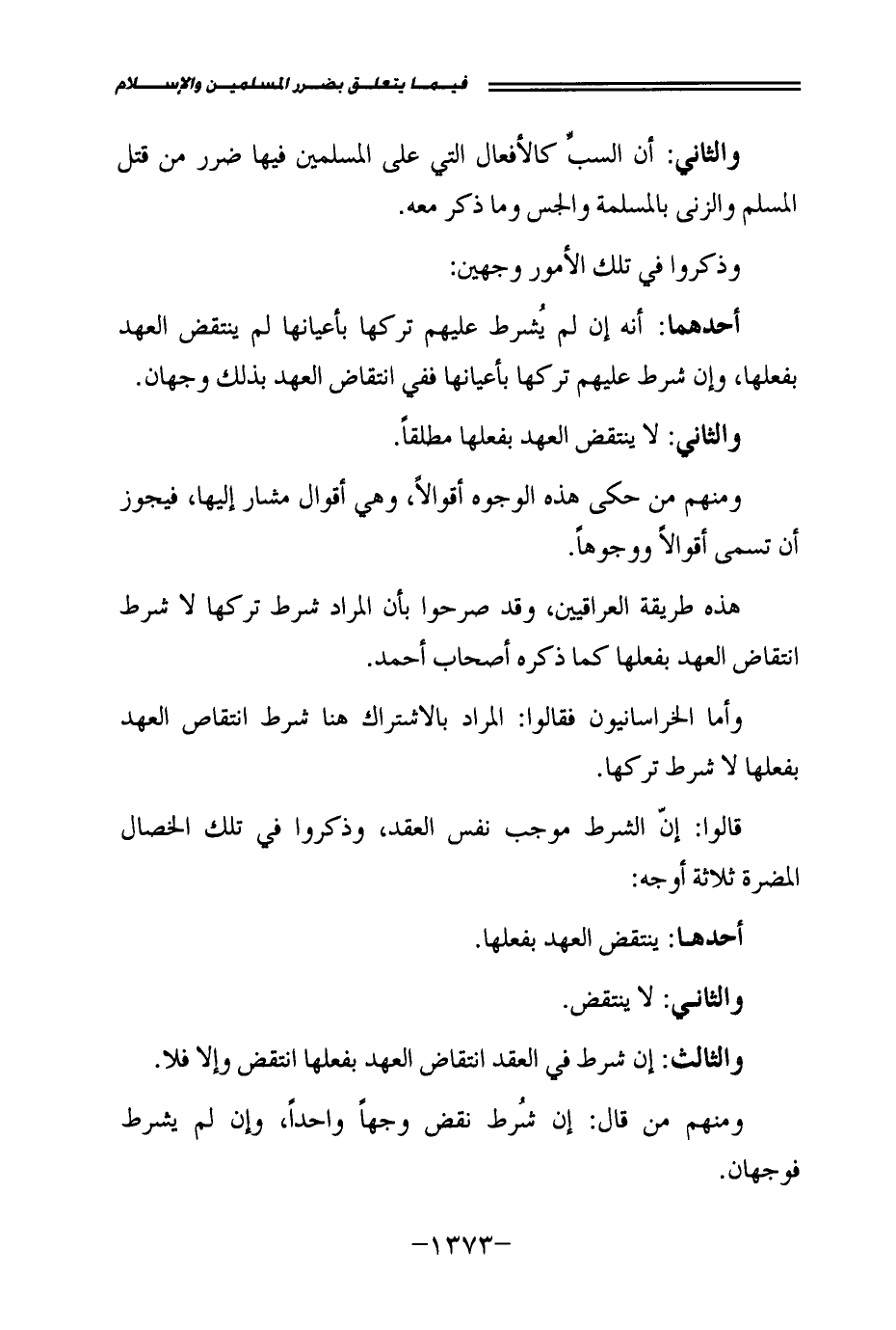 هَذِهِ طَرِيقَةُ الْعِرَاقِيِّينَ، وَقَدْ صَرَّحُوا بِأَنَّ الْمُرَادَ شَرْطُ تَرْكِهَا لَا شَرْطُ انْتِقَاضِ الْعَهْدِ بِفِعْلِهَا كَمَا ذَكَرَهُ أَصْحَابُ أَحْمَدَ.