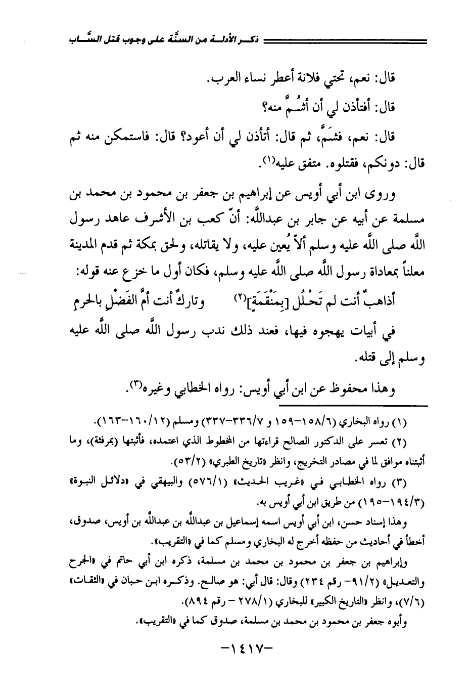 وَهَذَا مَحْفُوظٌ عَنِ ابْنِ أَبِي أُوَيْسٍ، رَوَاهُ الْخَطَّابِيُّ وَغَيْرُهُ.