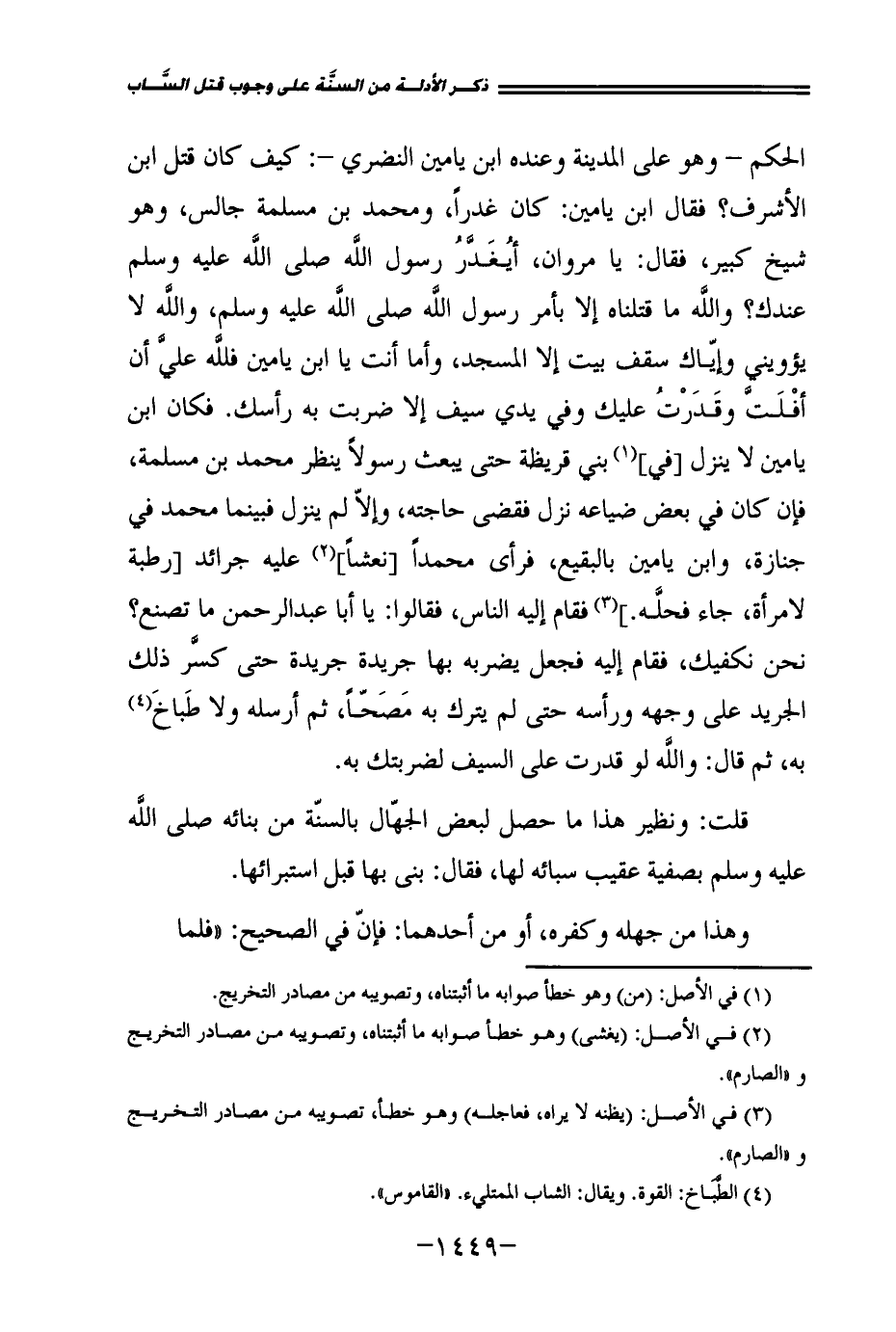 قُلْتُ: وَنَظِيرُ هَذَا مَا حَصَلَ لِبَعْضِ الْجُهَّالِ بِالسُّنَّةِ مِنْ بِنَائِهِ بِصَفِيَّةَ عَقِيبَ سِبَائِهِ لَهَا، فَقَالَ: بَنَى بِهَا قَبْلَ اسْتِبْرَائِهَا، وَهَذَا مِنْ جَهْلِهِ وَكُفْرِهِ، أَوْ مِنْ أَحَدِهِمَا، فَإِنَّ فِي الصَّحِيحِ: " «فَلَمَّا